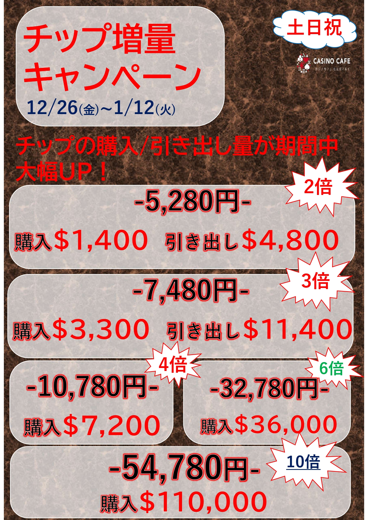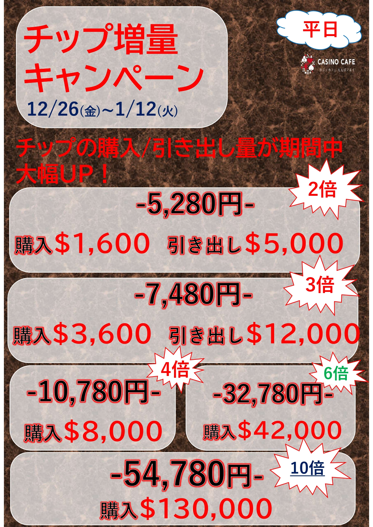 平素よりカジノカフェなんばマルイをご愛顧いただき誠にありがとうございます。