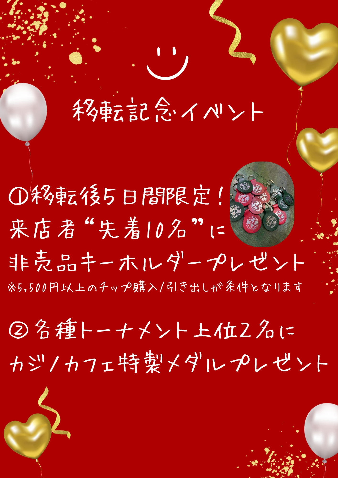 こちらで移転初日から移転を記念し、もっとカジノカフェを楽しめる、新たな場所でのキャンペーンを打ち出させて頂きます。
